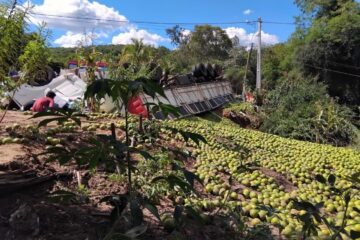Motorista morre e ajudante fica ferido após carreta tombar em Licínio de Almeida