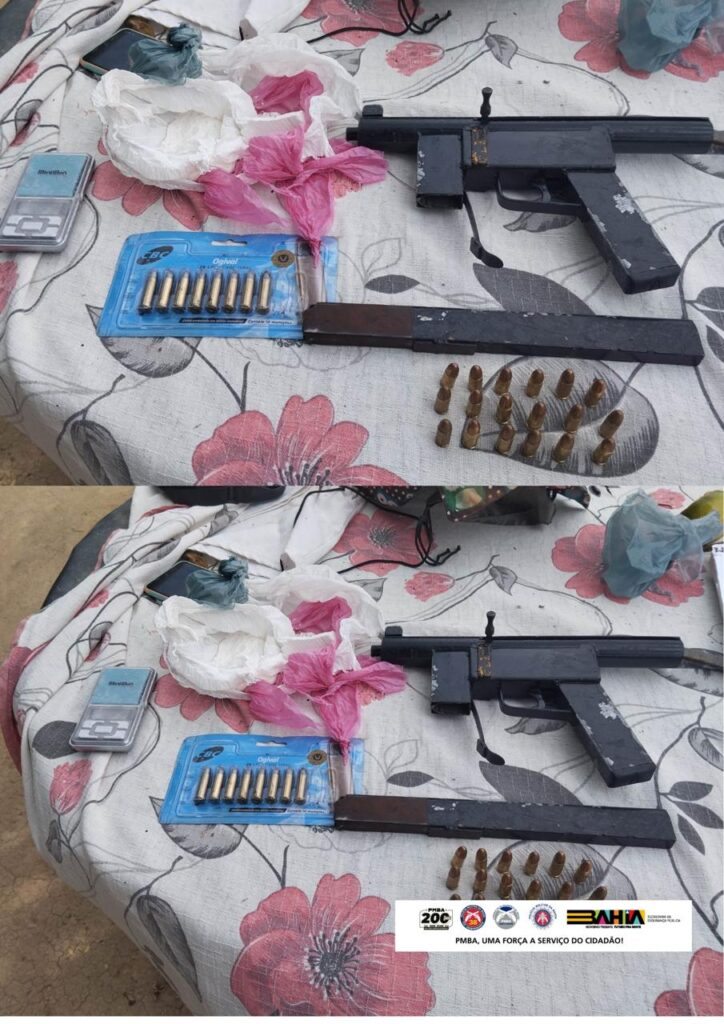 SERRA DO RAMALHO — Um homem foi preso por policiais da 38ª CIPM na noite desta terça-feira (18) após ser flagrado com uma submetralhadora e porções de cocaína e maconha na Agrovila 20, zona rural de Serra do Ramalho, na região oeste da Bahia.