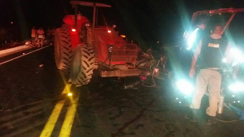 Um acidente envolvendo um trator e um carro de passeio na noite do último domingo 1 de outubro, por volta das 20h00, deixou três mortos e dois feridos na BR-135,próximo ao distrito de Monte Rei, em Juvenília,no Norte de Minas Gerais.