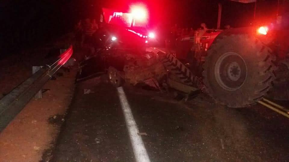 Acidente envolvendo trator e carro de passeio deixa três mortos da mesma família na BR-135 em Juvenília