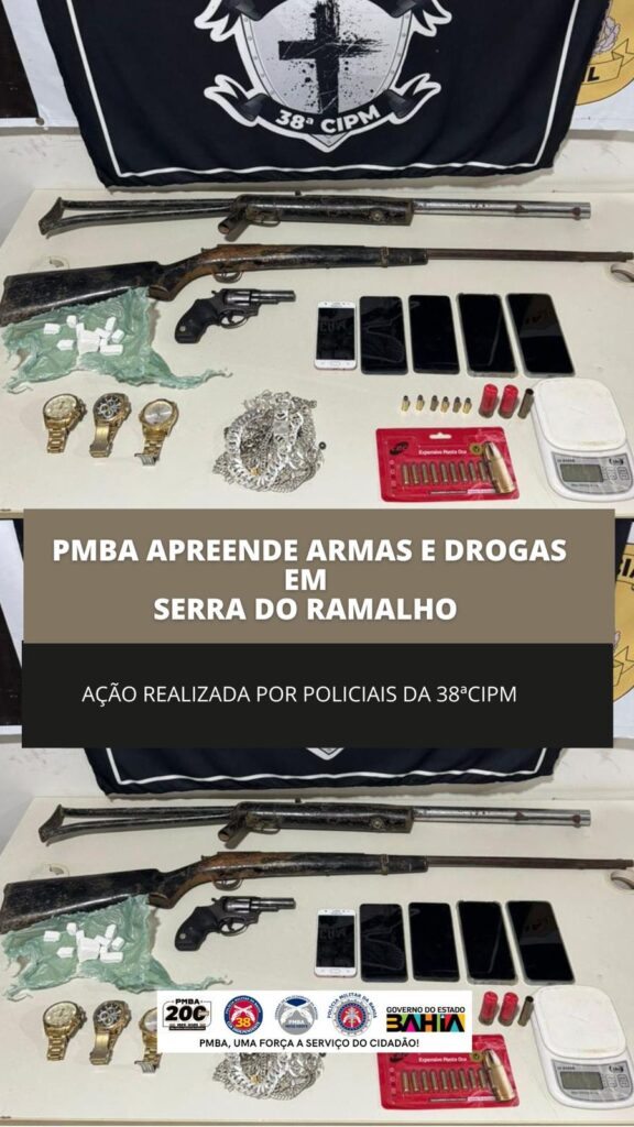 SERRA DO RAMALHO — Policiais da 38ª CIPM apreenderam armas e drogas na zona rural de Serra do Ramalho, na região oeste da Bahia. A apreensão ocorreu na tarde de quarta-feira (19), por volta das 17h, na Agrovila 2.