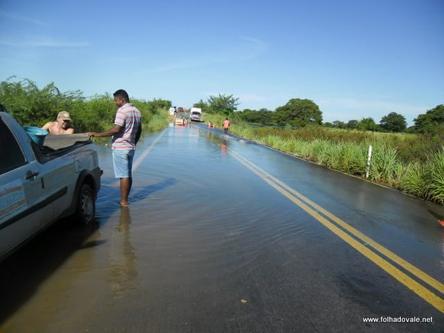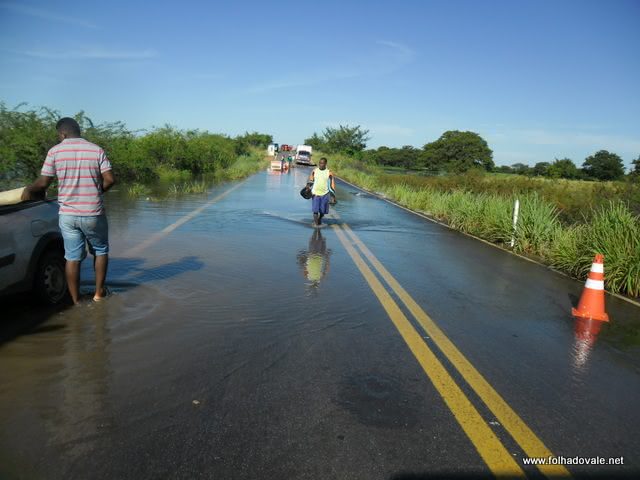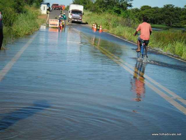 A passagem está impedida para carretas, caminhão e ônibus por tempo indeterminado. No momento o trafego está liberado apenas para moto e carro de passeio. De acordo o nível do Rio São Francisco vai aumentando, a situação só tende a piorar na BR-030, no Mandin.