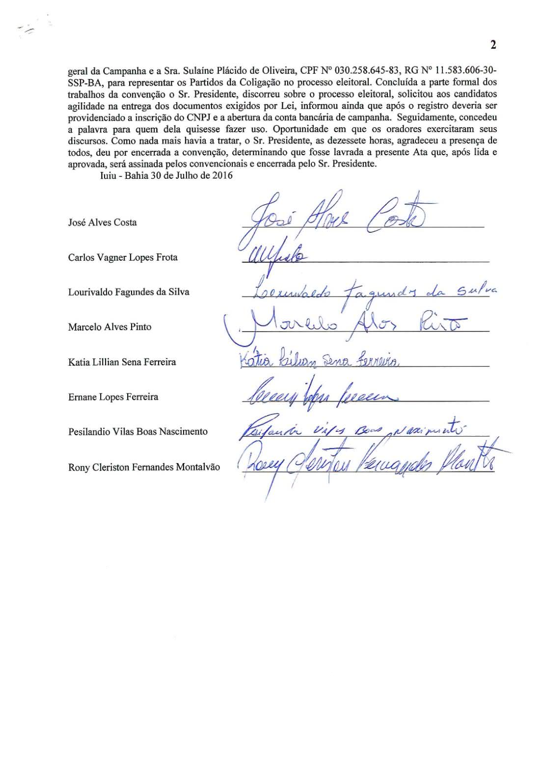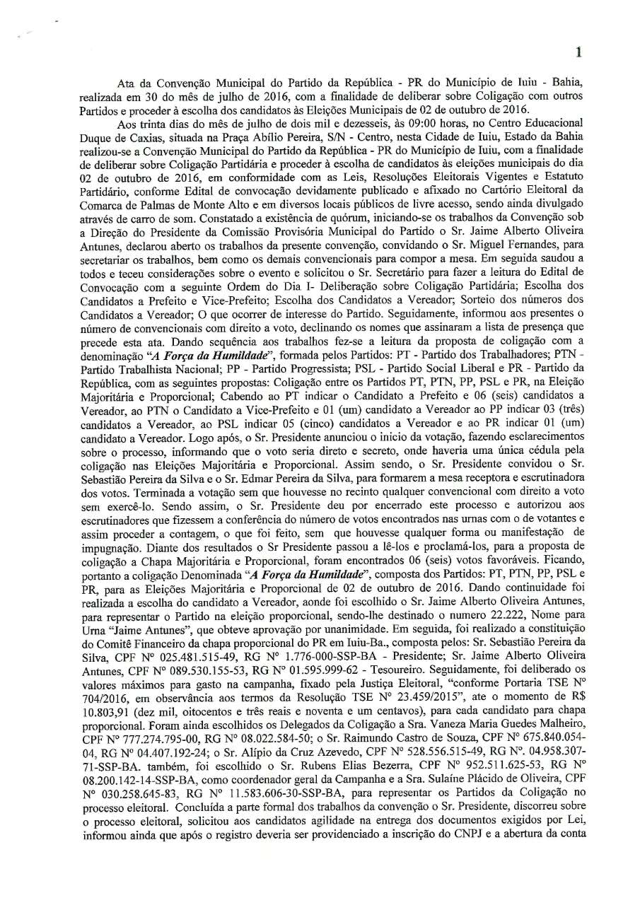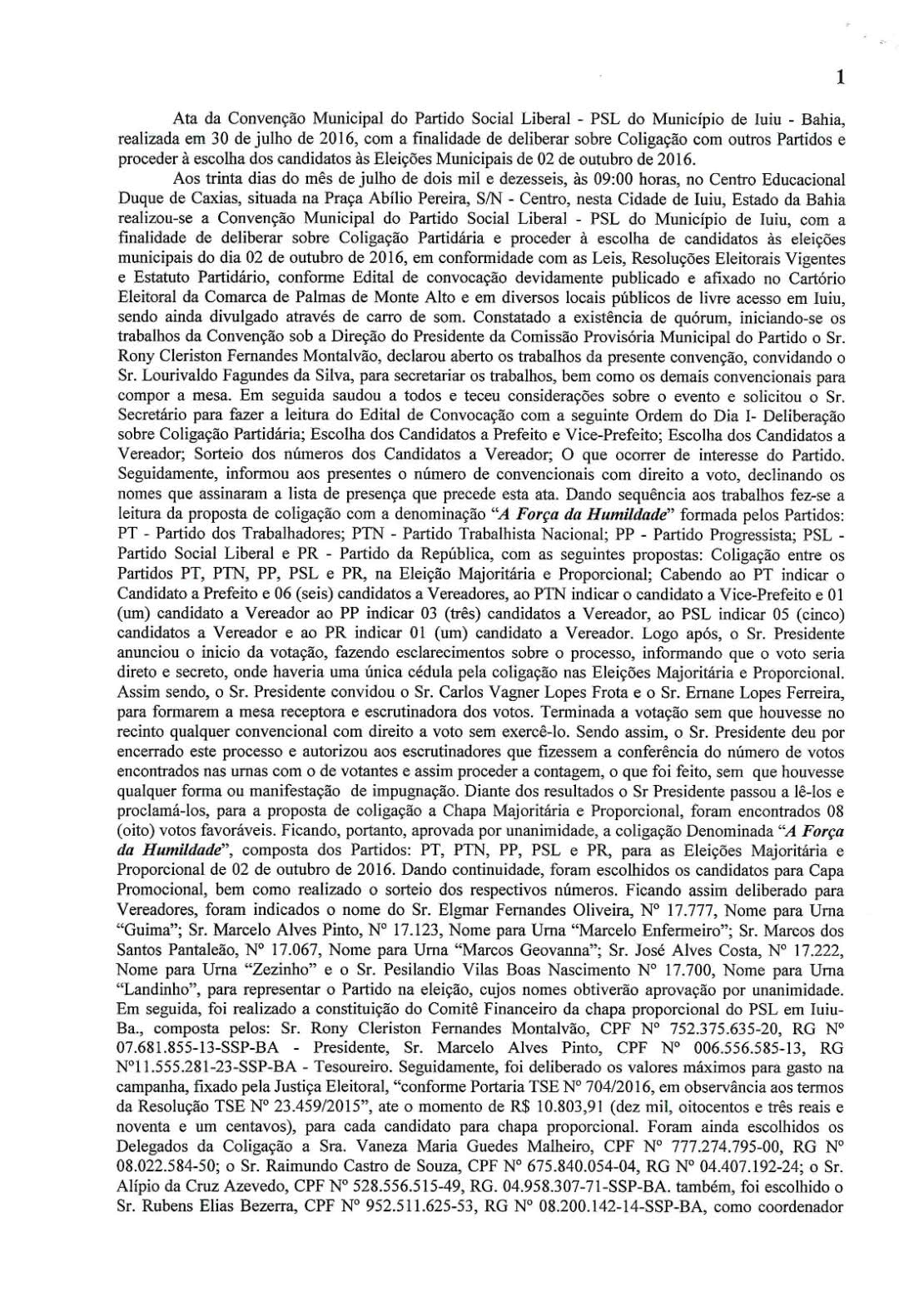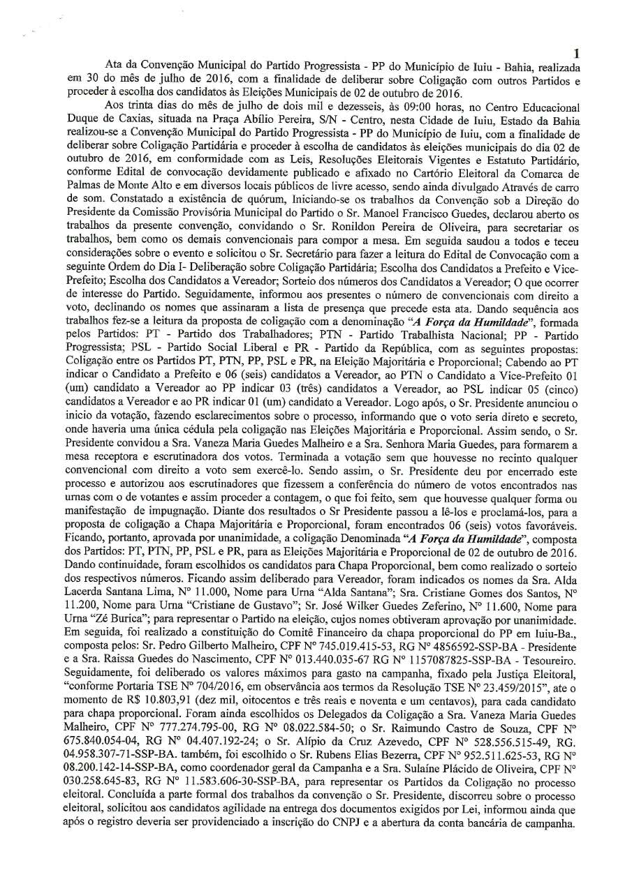 Ata da Coligação “A Força da Humildade” de Iuiú