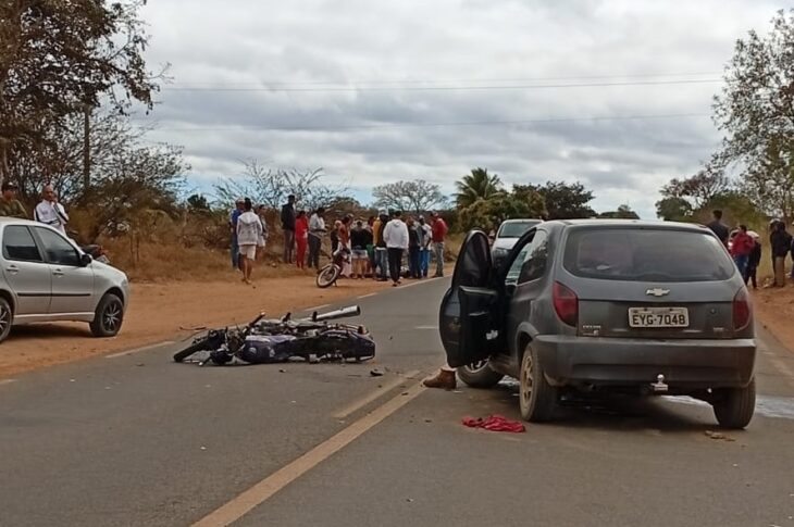 Colisão envolvendo carro e moto deixa uma pessoa ferida na BR-122, em Caetité