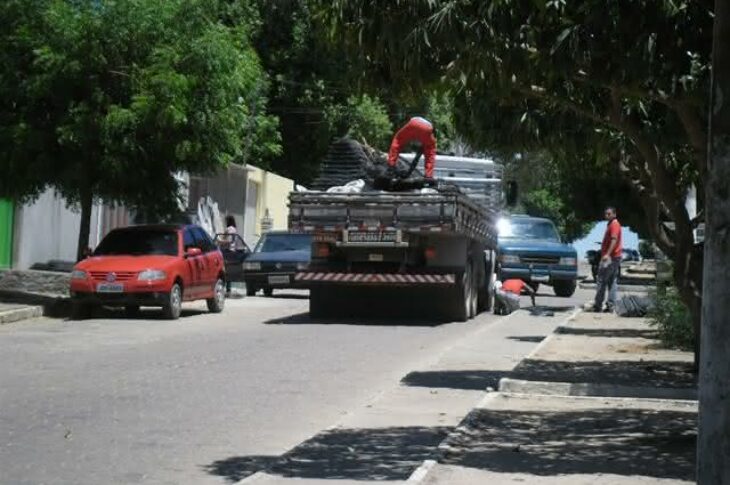 Caminhão carregado de fero é flagrado estacionado e descarregando na contra mão