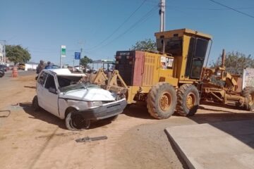 Carro de passeio é atingido por patrol em Guanambi após operador engatar marcha ré