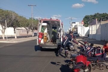 Guanambi: caminhonete não respeita parada obrigatória e motociclista fica ferido em colisão
