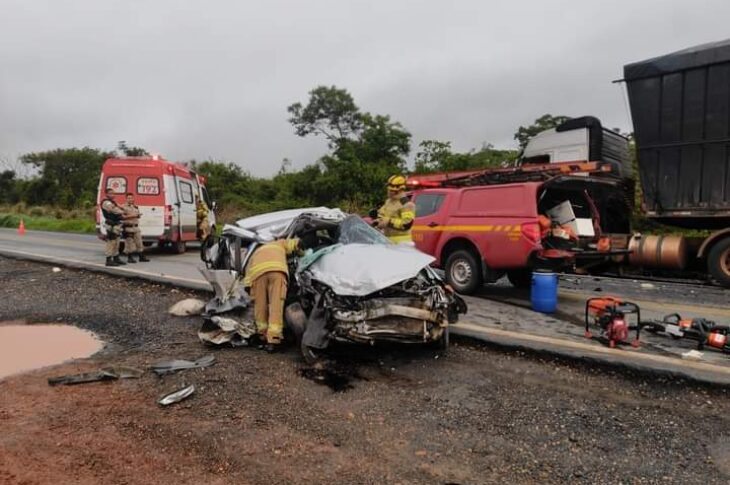 Bebê morre e outras três pessoas ficam feridas em colisão entre carro e carreta no Norte de Minas