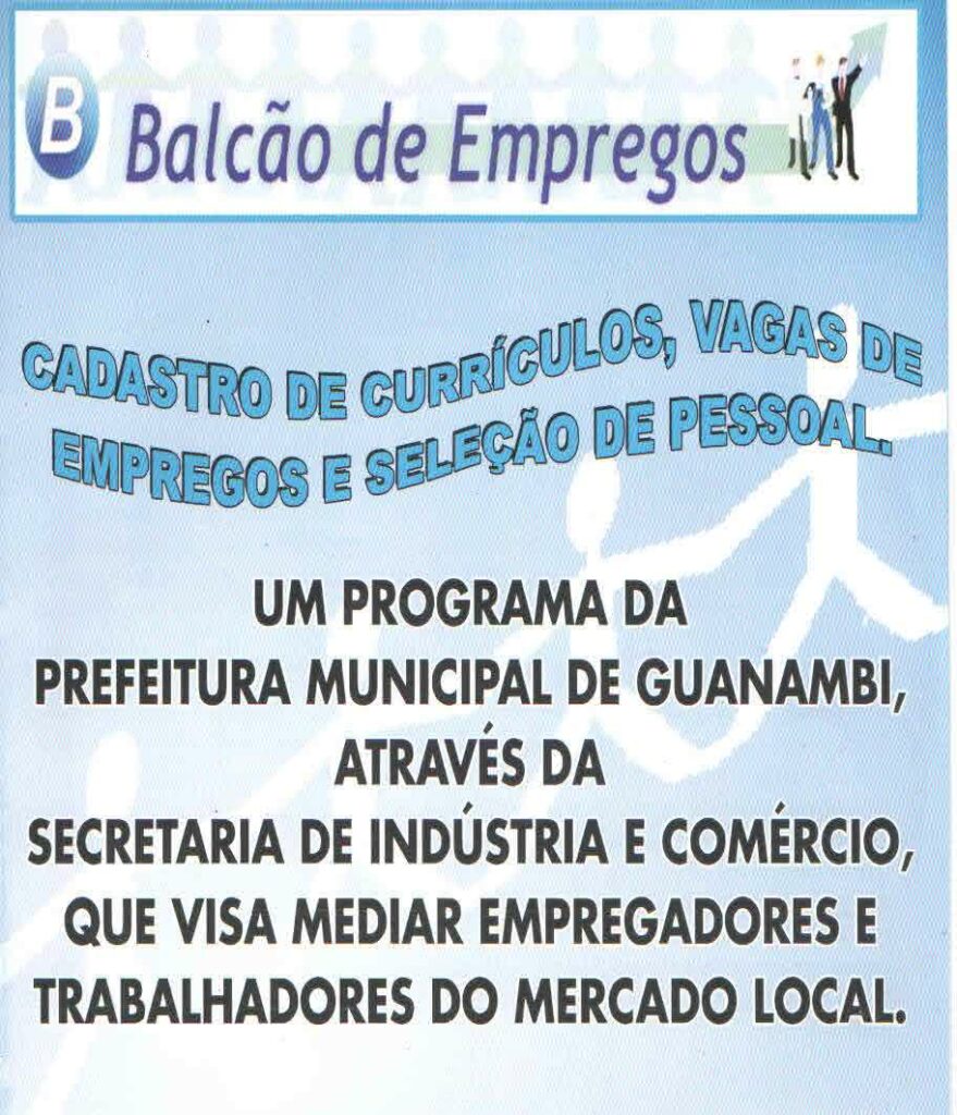 Acompanhe as ofertas de emprego publicadas pela nossa Fanpage: (acesse, curta e compartilhe: https://www.facebook.com/saladoempreendedorguanambi), ou pelo telefone: (77) 3451-4724.
