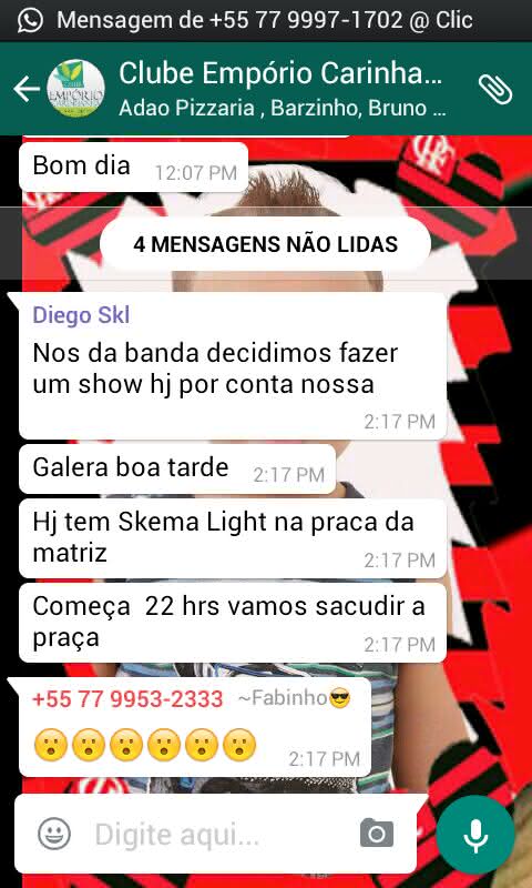 O mesmo fez a seguinte publicação no seu perfil: “Galera boa tarde! Hj dia 08 de fevereiro estaremos fazendo um show na praça da matriz partir das 22 h por conta própria decidimos agradar nosso público que sempre curte agt e sempre nos acompanha. Abertura por conta do DJ Maurício Balla. Vamos sacudir a praça geral…. Banda Skema Light e DJ Maurício Balla …. Tmj… Deus no comando….”,concluiu.