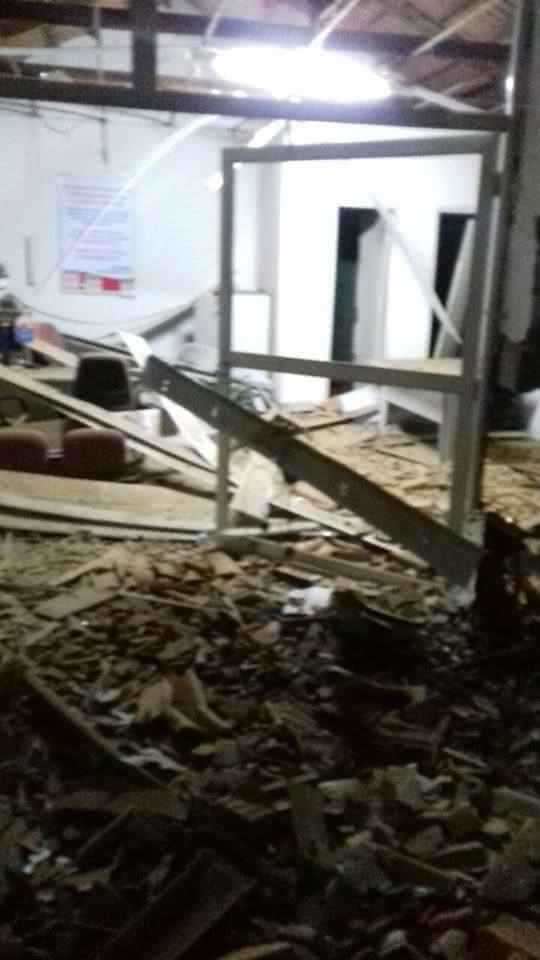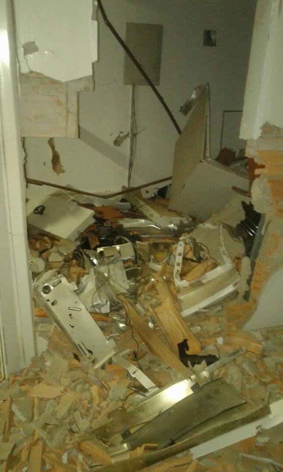Em nove anos de existência da agência, essa foi a primeira vez que bandidos explodem o banco. O estabelecimento ficou parcialmente destruído.