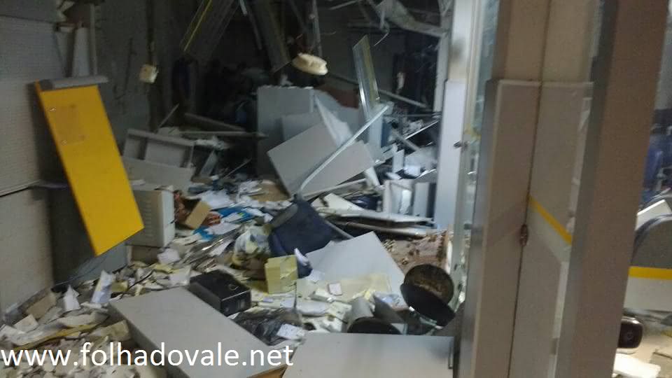 Bandidos explodiram a agência do Banco do Brasil, no centro da cidade. Conforme informações colhidas pelo portal Folha do Vale, era por volta das 0200, quando o bando explodiu a agência.