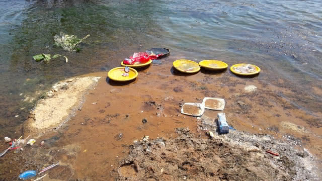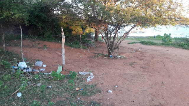 Banhistas descartam lixo na Barragem do Poço do Magro em Guanambi
