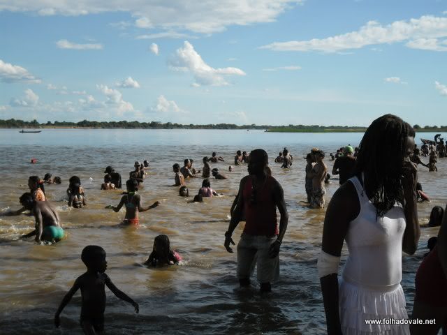 Os banhistas relaxaram nas águas do rio São Francisco, para aliviar do forte calor de mais de 28 graus à sombra, temperatura muito comum nesta temporada de verão.
