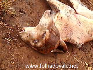 Um bezerro com duas cabeças nascido em uma propriedade rural no município de Carinhanha, no oeste da Bahia, chamou a atenção dos moradores do assentamento Mel de Abelha no início dessa semana. O animal com a anomalia chegou a sobreviver por algumas horas após o parto, mas não resistiu e morreu.