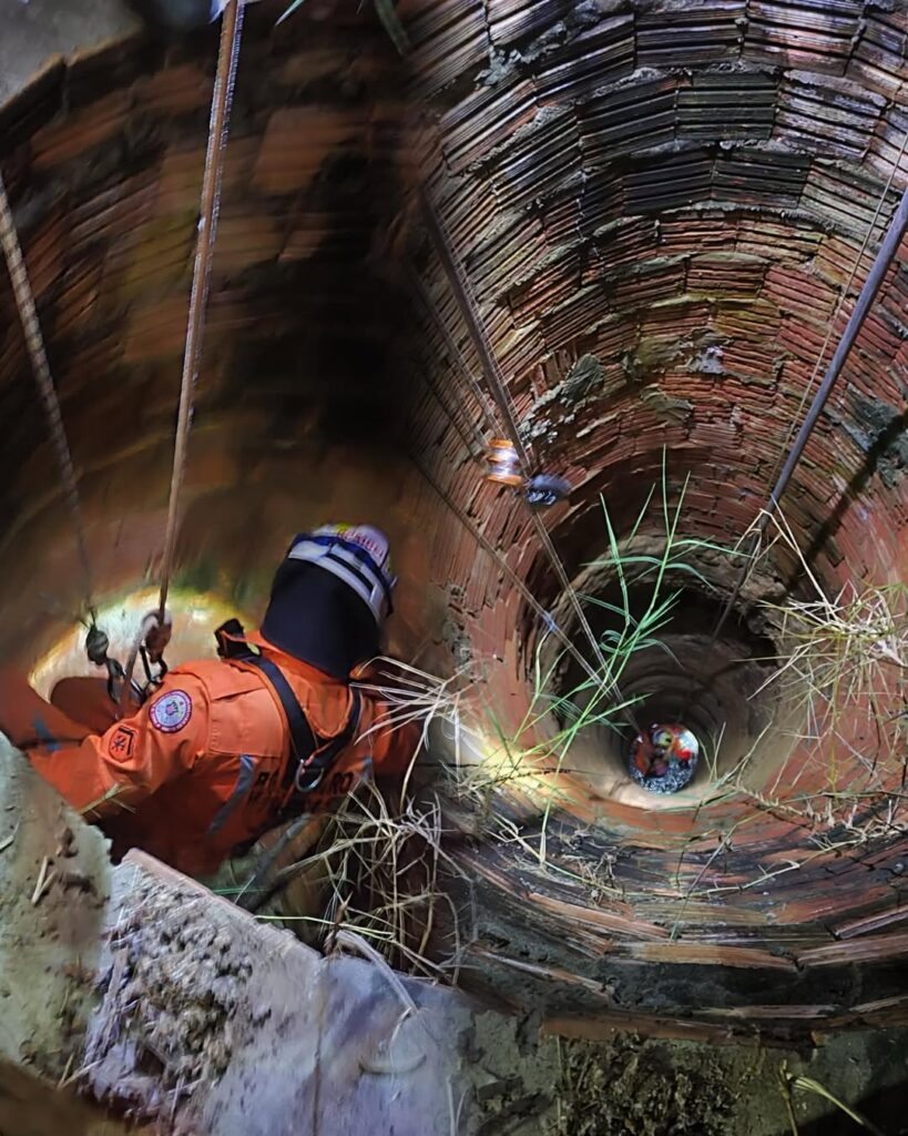 Para retirar a vítima com segurança, os bombeiros utilizaram técnicas especializadas de salvamento em altura, realizando a descida até o interior do poço de forma controlada. A ação exigiu precisão e cuidado para evitar novos ferimentos durante a retirada.