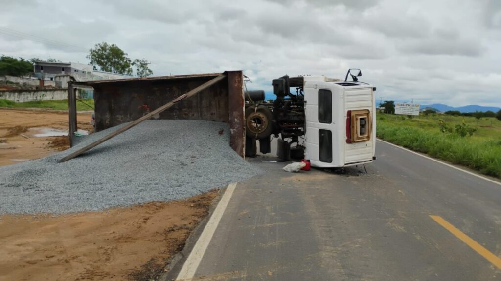 GUANAMBI — Uma caçamba carregada com brita tombou na manhã desta terça-feira (3), na BR-030, em Guanambi, na região sudoeste da Bahia. O acidente ocorreu por volta das 11h50, nas proximidades do Canil Municipal.
