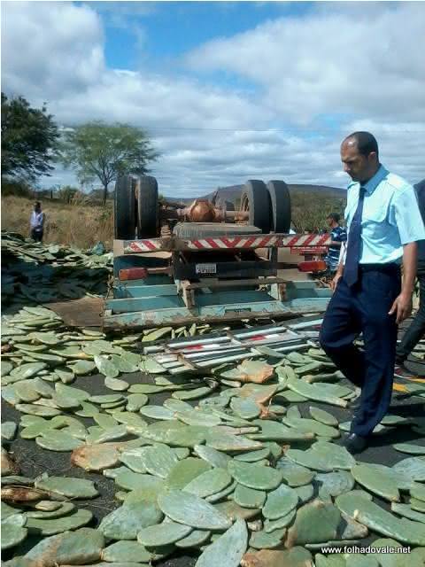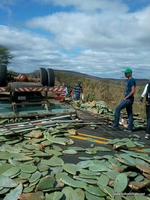 Segundo informações obtida pelo portal Folha do Vale,um caminhão carregado de palmas seguia sentido Brumado,quando foi fechado por uma carreta e capotou.