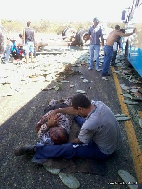 No caminhão viajavam os irmãos Alberto, Roberto e Delson Muniz,que estão internados em estado grave no Hospital Professor Magalhães Neto.Testemunhas relataram à Polícia Rodoviária Estadual (PRE) que o caminhão foi fechado por uma carreta e o condutor acabou perdendo o controle da direção.
