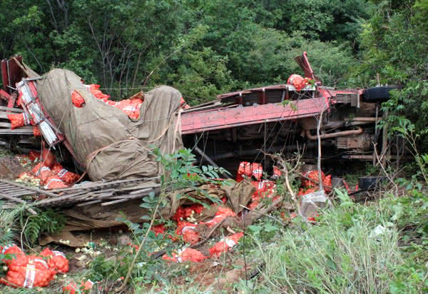 Um caminho carregado com cebola tombou na BA-148, no trecho entre os municípios de Livramento de Nossa Senhora e Rio de Contas, na madrugada desta terça-feira (26). Conforme informação da 46ª Companhia Independente da Polícia Militar (CIPM), o acidente ocorreu na Curva do S, após o motorista perder o controle do veículo.