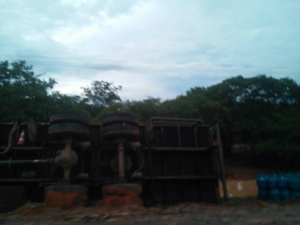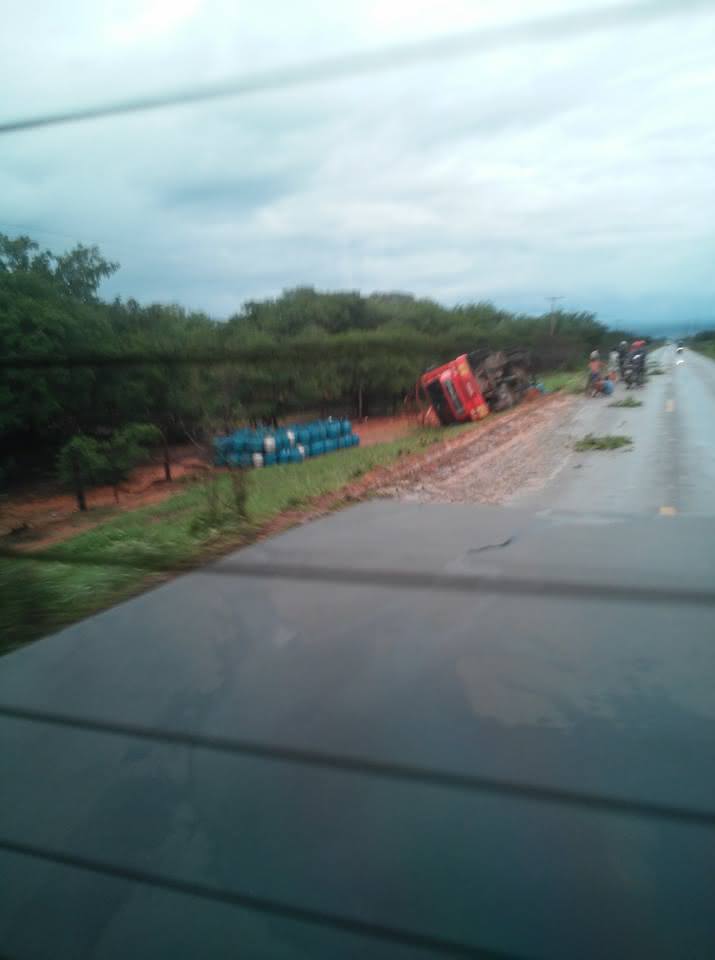 Um caminhão carregado de botijões de gás tombou na última sexta-feira, 22 de janeiro, na BA-161, na Agrovila 2,em Serra do Ramalho, oeste da Bahia. Populares informaram que o motorista pode ter perdido o controle do veículo e tombou.