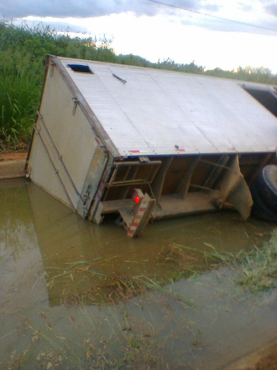 Um caminhão carregado de manga caiu na última segunda-feira, 9 de maio, dentro do canal do projeto Jaíba, em Jaíba, norte de Minas. Segundo informações não teve feridos.