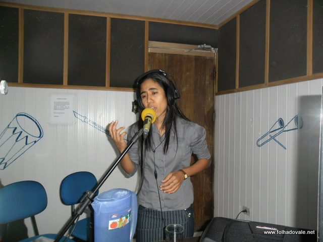 Ao vivo nos estúdios da rádio Pontal FM, a garota tímida ficou a vontade quando soltou bela voz cantando e encantando ou ouvintes.