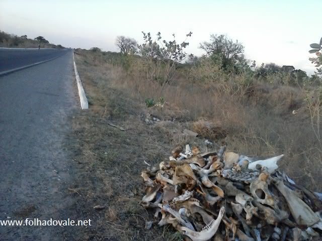 O trecho entre a ponte Guimarães Rosa e o anel Viário de Feira da Mata, na BR-030, mostra um verdadeiro cemitério. Os animais são abatidos na zona rural e as ossadas são jogadas ao logo dos quase quatro quilômetros.