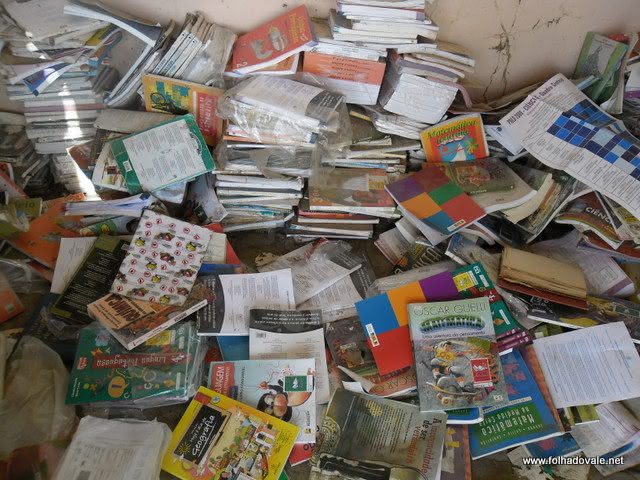 A reportagem do Folhadovale. Net encontrou, na manhã de sexta-feira, 27 de janeiro vários livros didáticos jogados em vários locais no Parque de Exposições da cidade. São exemplares novos que nunca foram utilizados e outros com marca de uso. Na maior parte livros didáticos de português, ciência e história.