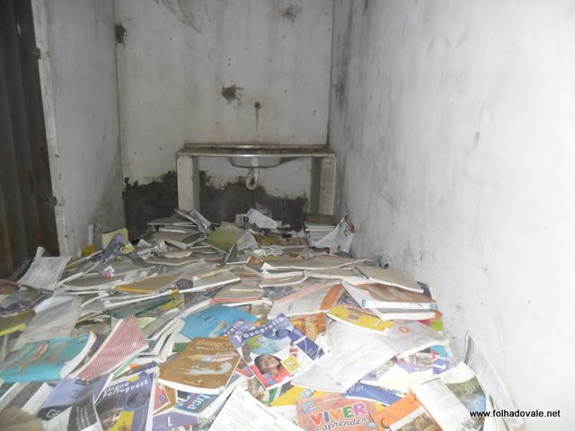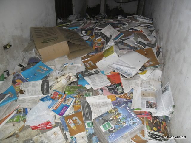 Nossa equipe chegou ao local, através de denúncia de moradores. Os livros que não foram distribuídos para os alunos, agora estão sendo usados para cupins e ratos.