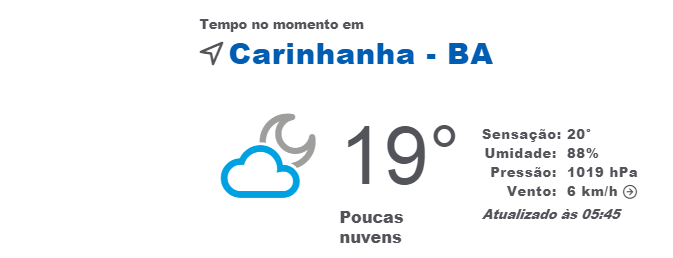 A cidade de Carinhanha, no Oeste da Bahia, amanheceu nesta sábado (1), com temperatura de 19º e sensação de 20º. Pode até parecer quente, mas para quem está acostumado com temperaturas nas casas dos 23º e 24º graus é muito frio.