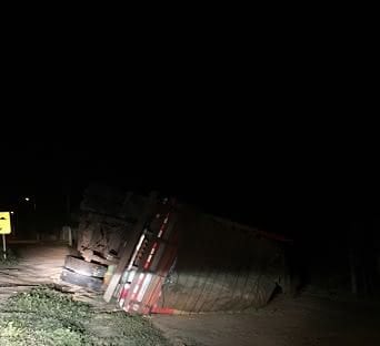 Carreta carregada de manga tomba na BA-161 em Carinhanha