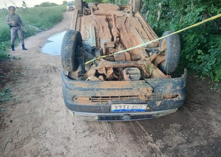 A guarnição deslocou-se até uma via vicinal próxima ao hospital local, onde encontrou um veículo que havia capotado. Não foram localizadas vítimas no local. Segundo relatos de moradores da região, o condutor teria abandonado o carro e evadido antes da chegada da PM.