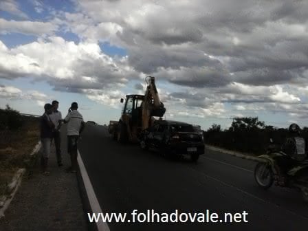 Apesar do susto, o rapaz não se feriu. O carro ficou parcialmente destruído e precisou ser removido pela retroescavadeira.