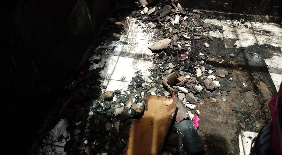 A casa de Dona Maria Rosa, localizada na Avenida Altino Ferreira de Souza, em Vila Neves, município de Candiba, ficou parcialmente destruída pelo fogo após um curto-circuito na rede elétrica.