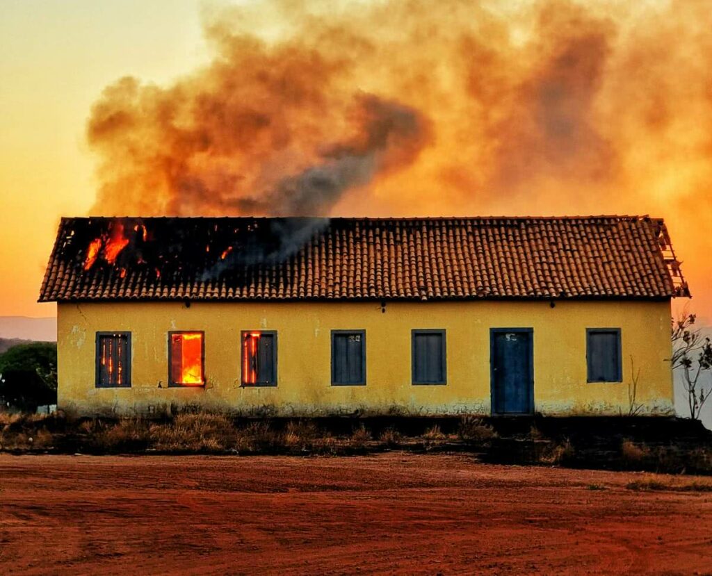 O Casarão de Guanambi foi atingido após o fogo iniciar em um matagal. O imóvel ficou parcialmente destruído.