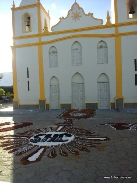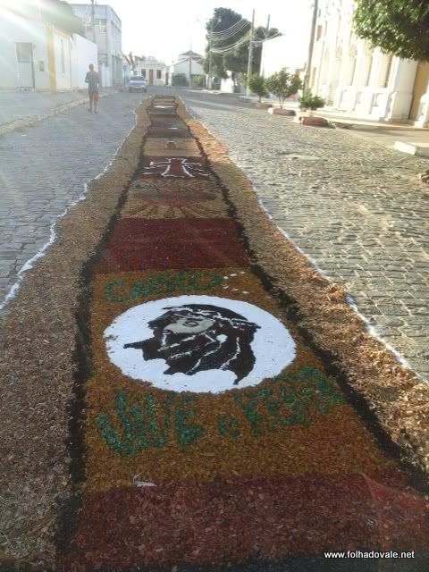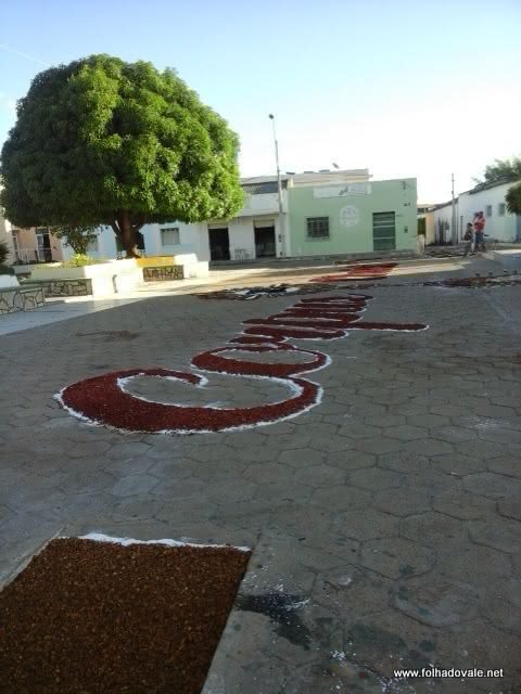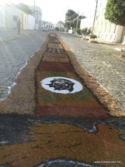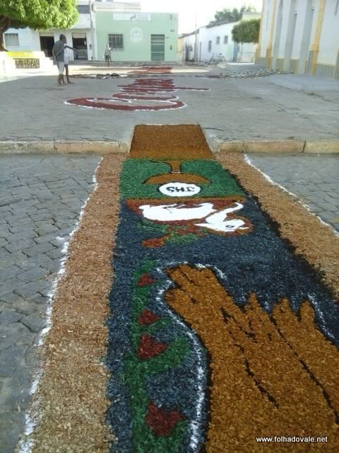 Católicos de Carinhanha, no oeste da Bahia, montaram um tapete gigante para celebrar Corpus Christi na Praça da Matriz, na última quinta-feira, 26 de maio. O tapete foi montado com cerca de 70 metros, a decoração traz imagens surpreendentes. Às 12h, o tapete havia terminado de ser confeccionado.