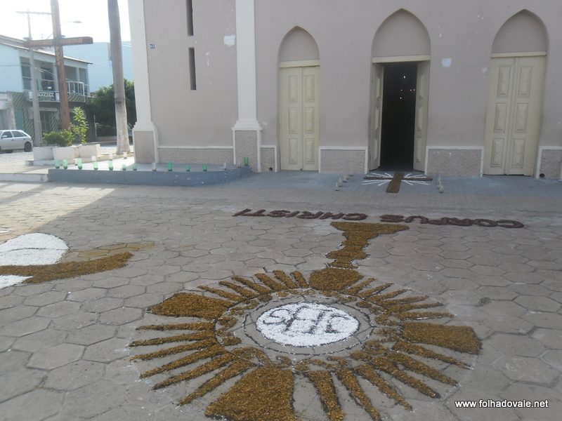 Dezenas de pessoas foram mobilizadas em Carinhanhana manhã desta quinta-feira(30) para a confecção dos tapetes de serragem, que tradicionalmente são montados para o dia de Corpus Christi. São cerca de 400 metros de enfeite, no entorno da Praça da Matriz, além do trajeto defronte da Igreja. Neste ano, o trabalho foi mais Segundo um fiel, o trabalho iniciou na manhã logo pela manhã e terminou somente no começo da desta quinta-feira.