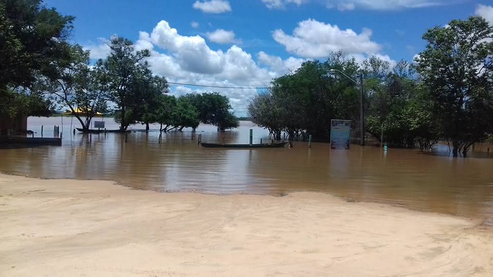 Com quase seis metros e meio acima do nível, as águas saiu do curso do rio e invadiu as praias do Pontal.