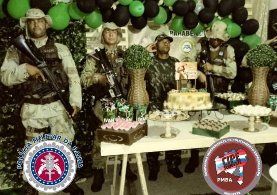 A festa surpresa para Ivan que tem Síndrome de Down foi realizada pelos policiais do CIPE/ Sudoeste, na cidade de Carinhanha, na noite de sábado (26).