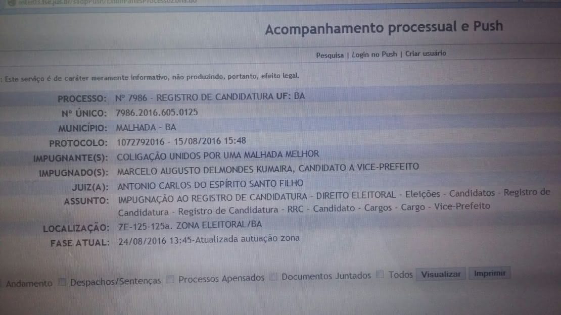 “Coligação Unidos por uma Malhada Melhor pede impugnação de candidato a vice-prefeito e vereador da coligação “Pra Malhada avançar mais” por ausência de filiação partidária”