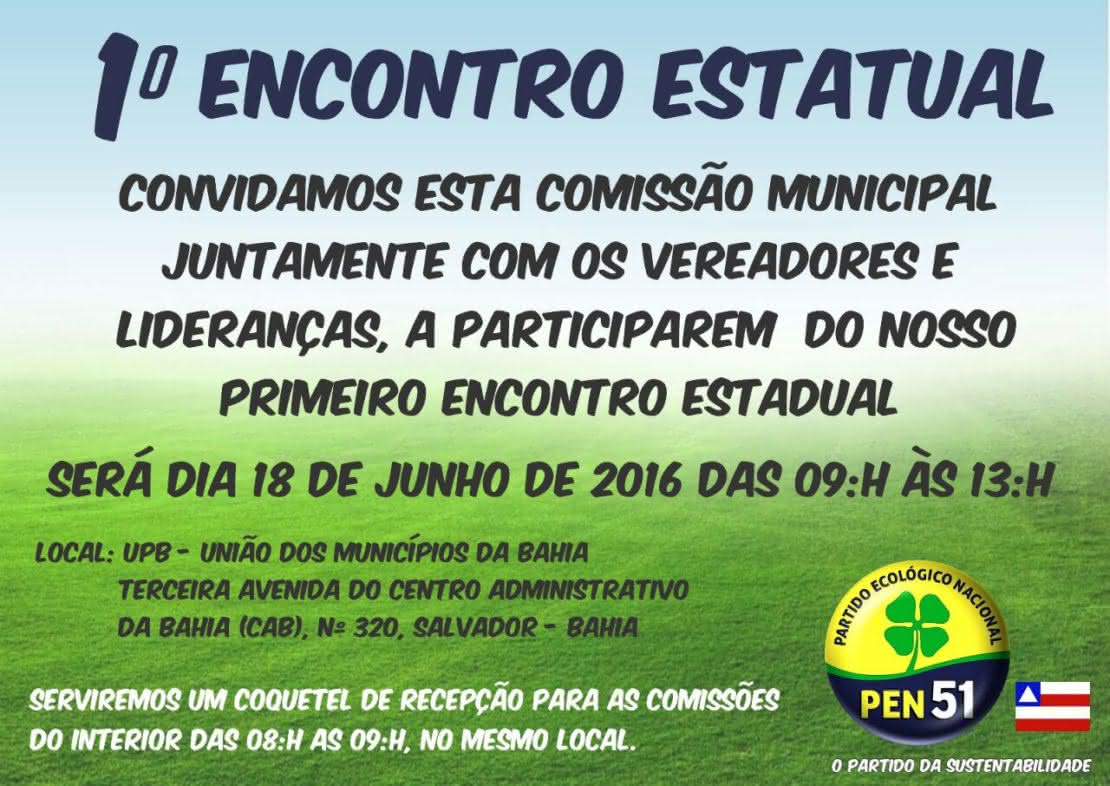 A Comitiva do PEN de Carinhanha, no oeste da Bahia, esteve em Salvador, participando do primeiro encontro de filiados, militantes, vereadores, deputados, simpatizantes e candidatos a vários cargos nas eleições de outubro pelo Partido Ecológico Nacional,no dia 18 de junho.
