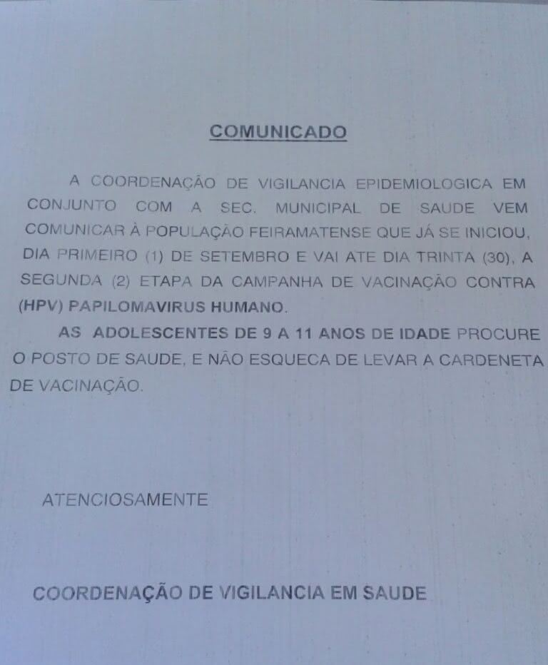 Comunicado importante da Prefeitura de Feira da Mata