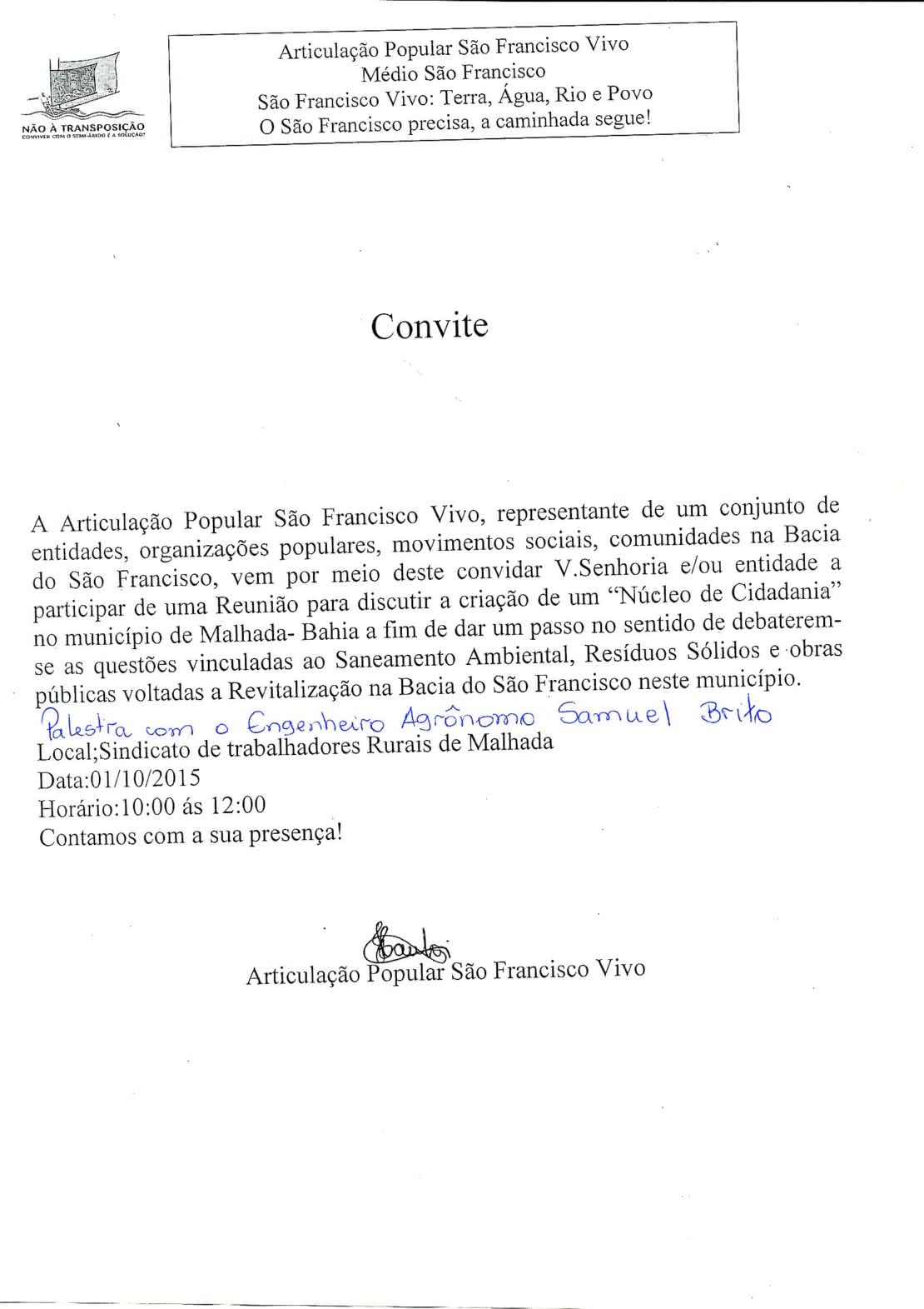 Home » Malhada » ConviteConviteConvite Por Joao Miguel - MTBE: 6889/BA em 30 de setembro de 2015 Solicitar direito de resposta Convite FacebookMessengerTwitterLinkedInWhatsApp
