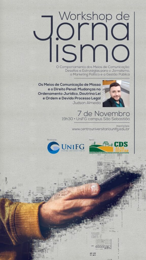 O curso de Jornalismo do Centro Universitário (UniFG) realiza, nos dias 7 e 8 de novembro, o 1º Workshop de Jornalismo. Além de palestras que serão ministradas por jornalistas e advogados, haverá Workshop de Jornalismo.