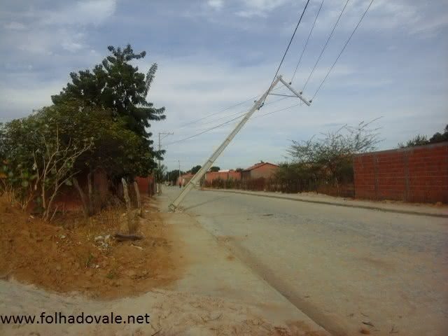 Um poste de iluminação localizado na Rua Pista II,no bairro São Francisco, próximo ao Campo do São Francisco em Carinhanha, no oeste da Bahia, pode cair a qualquer momento, colocando em risco a vida de pedestres e moradores das proximidades.