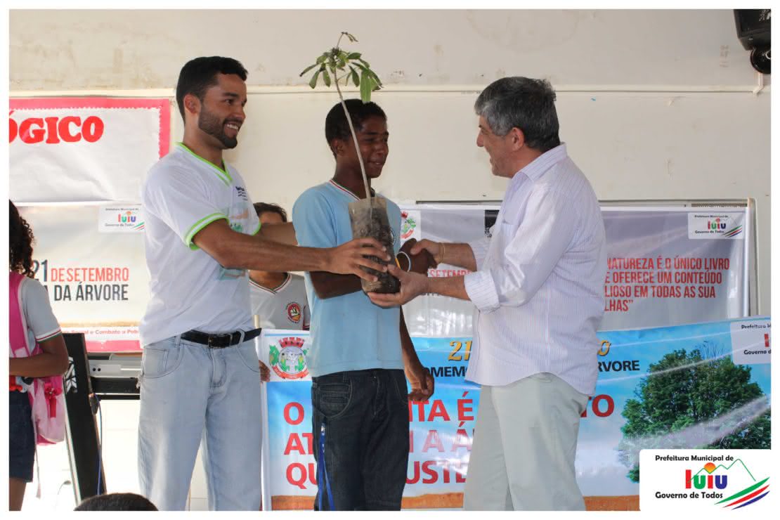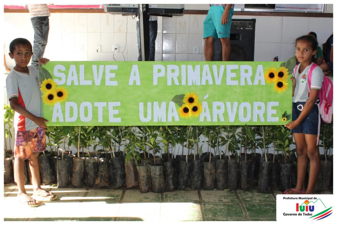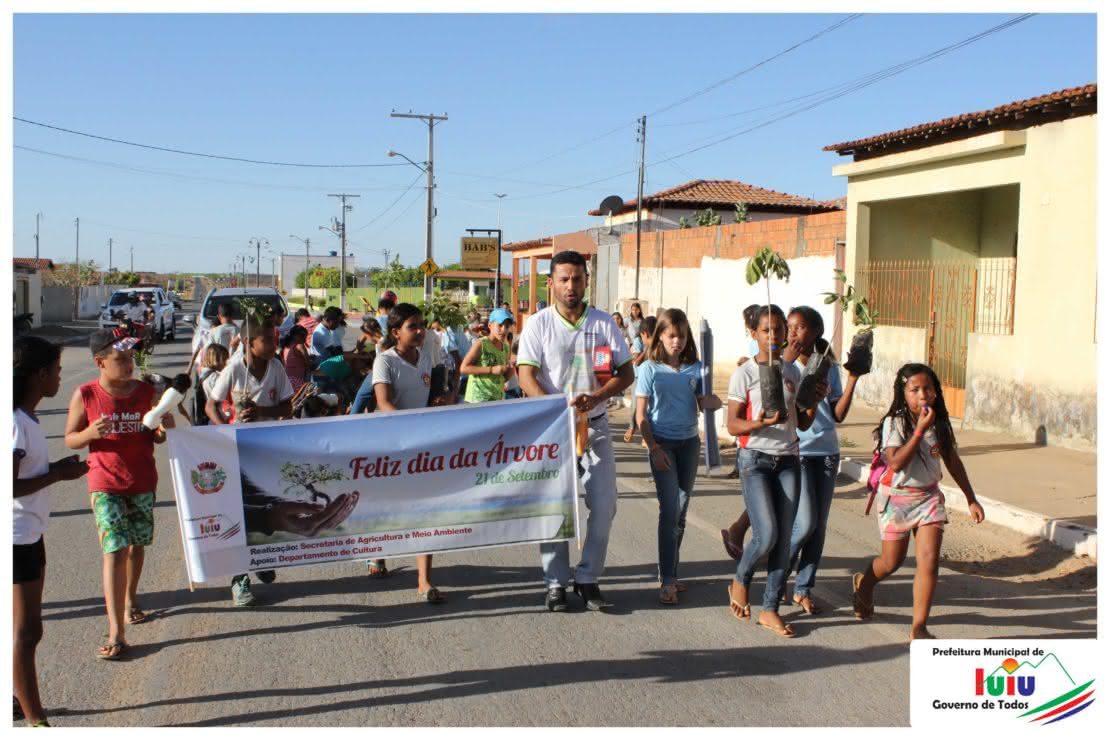 Na sexta feira dia 19/09, em comemoração ao Dia da Árvore – 21 de Setembro – a Secretaria de Agricultura e Meio Ambiente de Iuiú, em parceria com a Secretaria de Educação, Ação Social, Saúde e Departamento de Cultura, realizou-se distribuição de Mudas e plantio nos diversos bairros da Sede do Município, a participação dos alunos das escolas da rede municipal foi fundamental nesse evento.