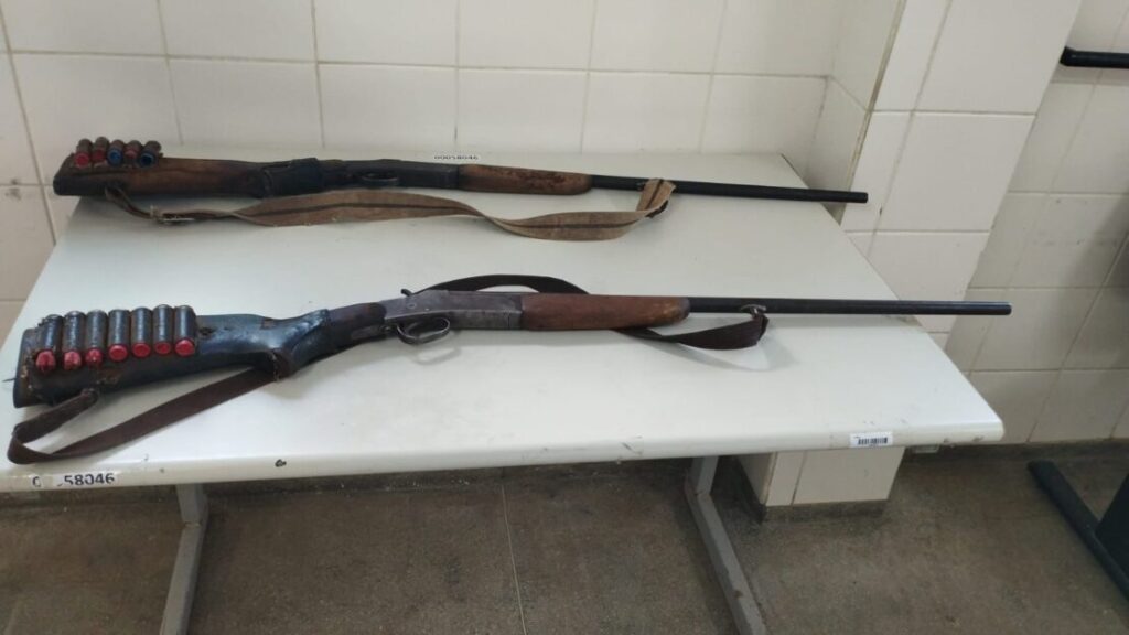 Os policiais realizaram buscas no interior do automóvel, onde localizaram duas espingardas calibre 28, além de munições do mesmo calibre.
