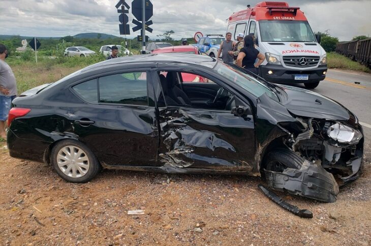 Carro é atingido por trem na BR-030 em Brumado