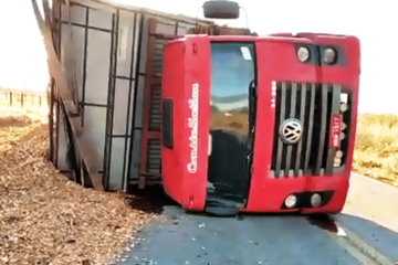Caminhão tomba na BA-612 em Candiba